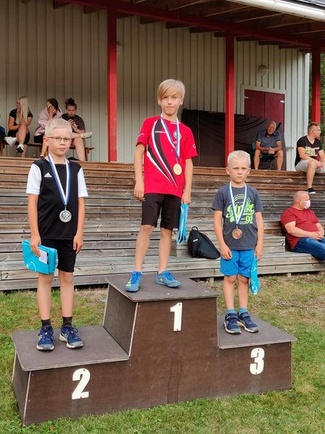 ![]() kisat12.8.21, pojat 9 pituushyppy 1. Eino Turunen, 2. Aatu Laasanen 3. Otto Laasanen |
