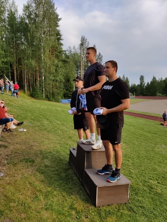 ![]() Miehet keihäs, 12.8.21 1. Toni Sirviö, 2. Sampo Lehtola, 3. Ville Miettinen |